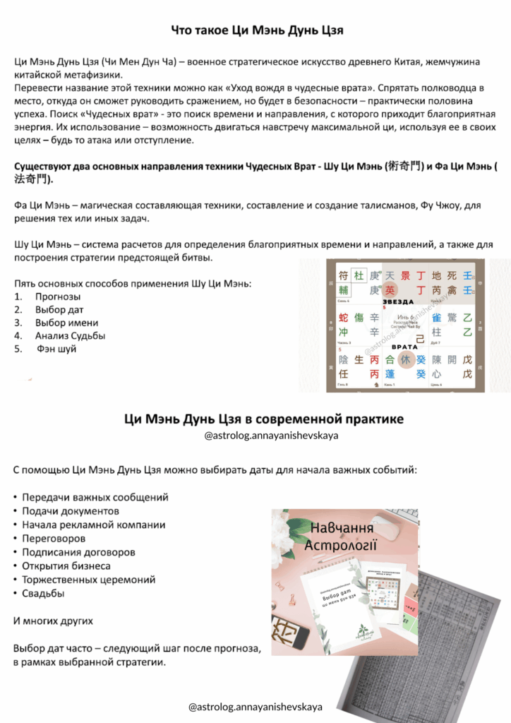 Ци Мень — это древняя китайская наука, созданная для прогнозирования событий и выбора оптимального времени для действий. Астрология в этой системе играет значительную роль. Китайцы первыми пришли к выводу, что в мире постоянны только перемены. Наблюдая за природой и жизнью, они создали одну из самых точных систем анализа и навигации по любым ситуациям.